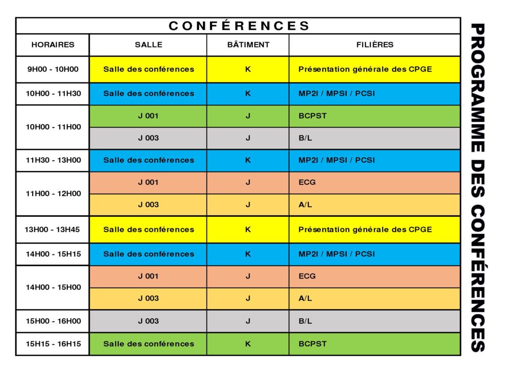 Planning des conférences